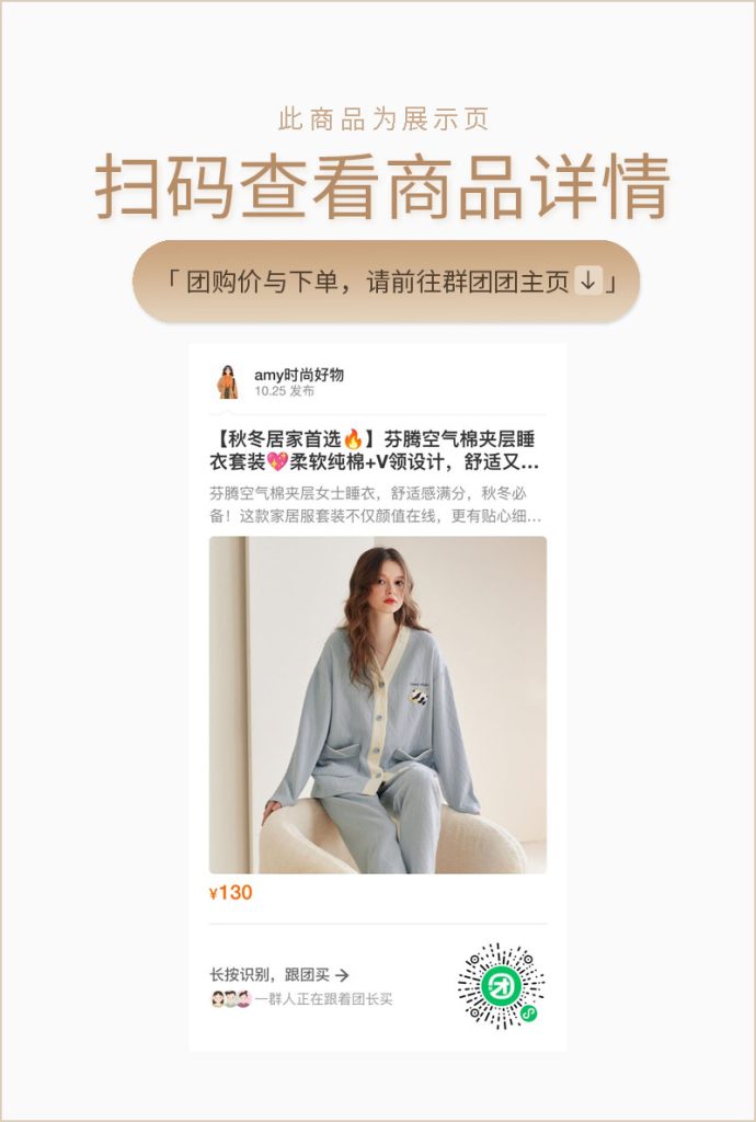 芬腾空气棉夹层女士睡衣¥130.00 芬腾空气棉夹层女士睡衣,舒适感满分,秋冬必备!这款家居服套装不仅颜值在线,更有贴心细节设计,一起来看看吧~ 柔软亲肤的纯棉材质,给肌肤最温柔的呵护。触感细腻顺滑,让你在寒冷的季节也能享受舒适与温暖。 描述 相关产品 圆领麻花开衫 ¥99.00 轻薄直筒短棉衣夹克 ¥189.00 人字纹羊毛阔腿裤 ¥79.00 肯豆短款泡芙羽绒服 ¥228.00